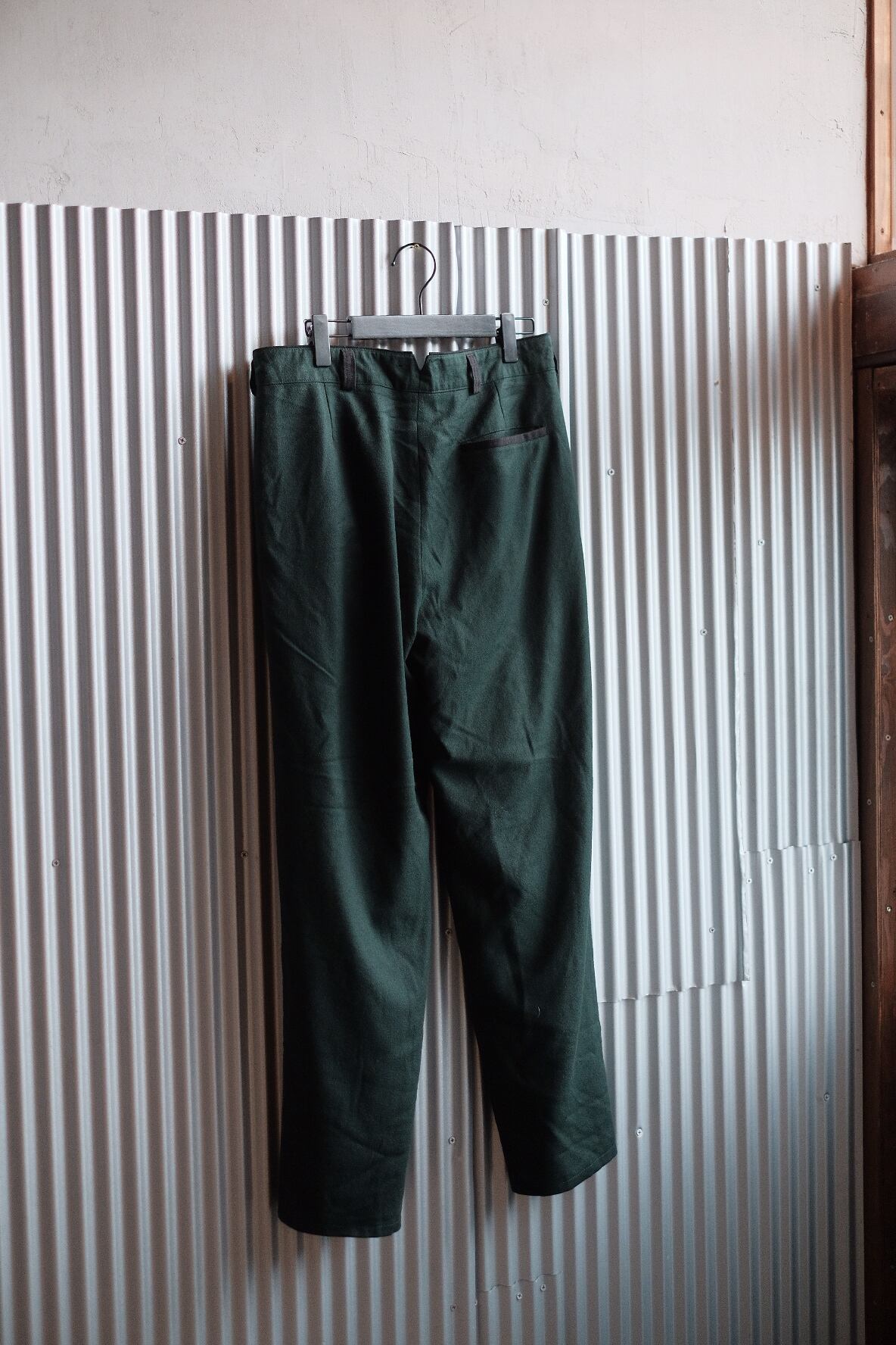 結構なテーバードがかかったパンツです。