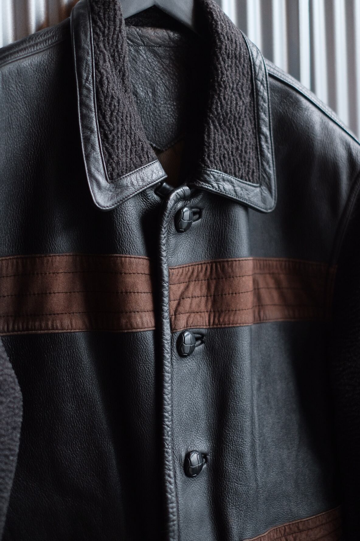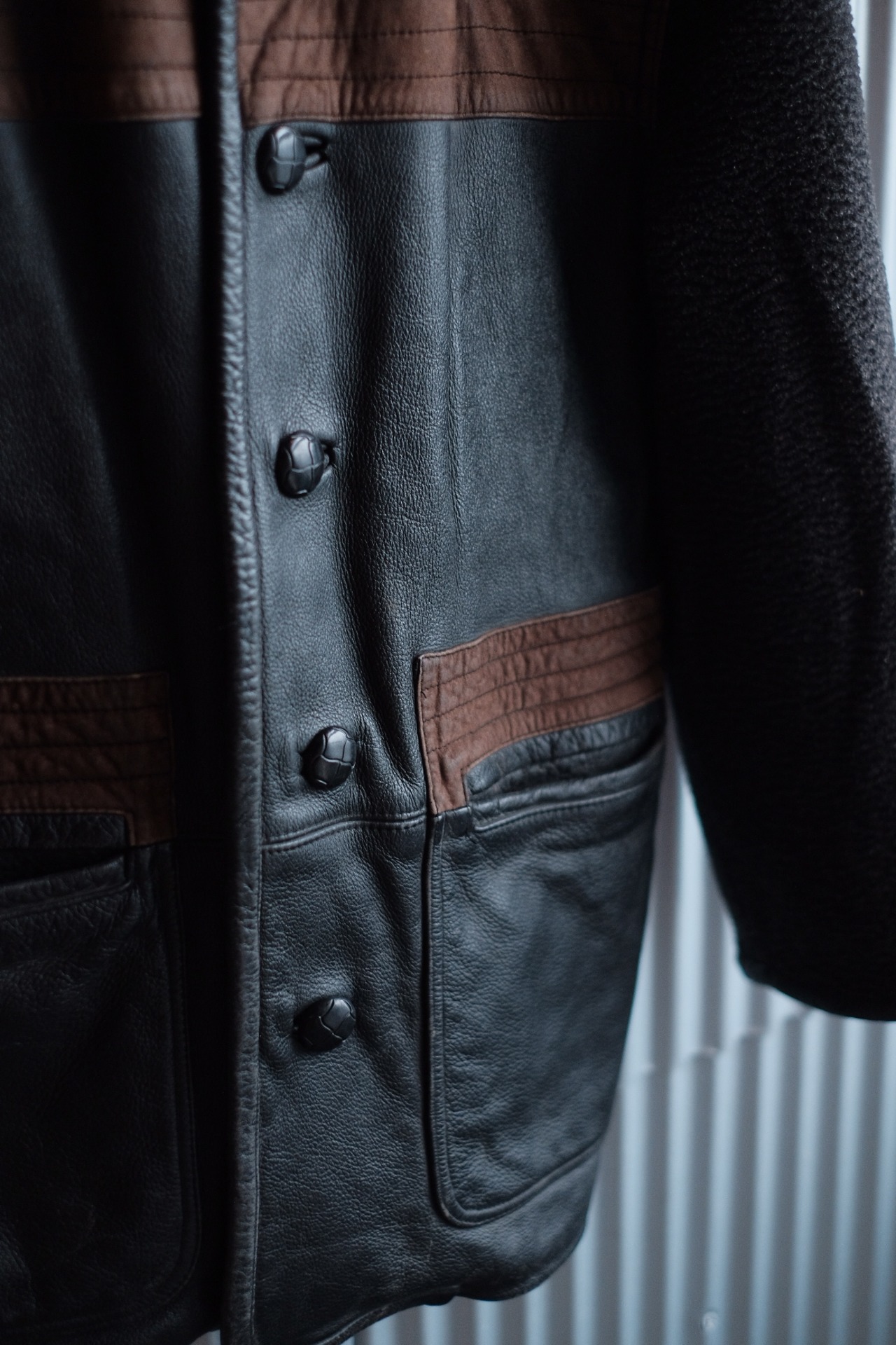 ウール部分とレザー部分の切り返しになっています。