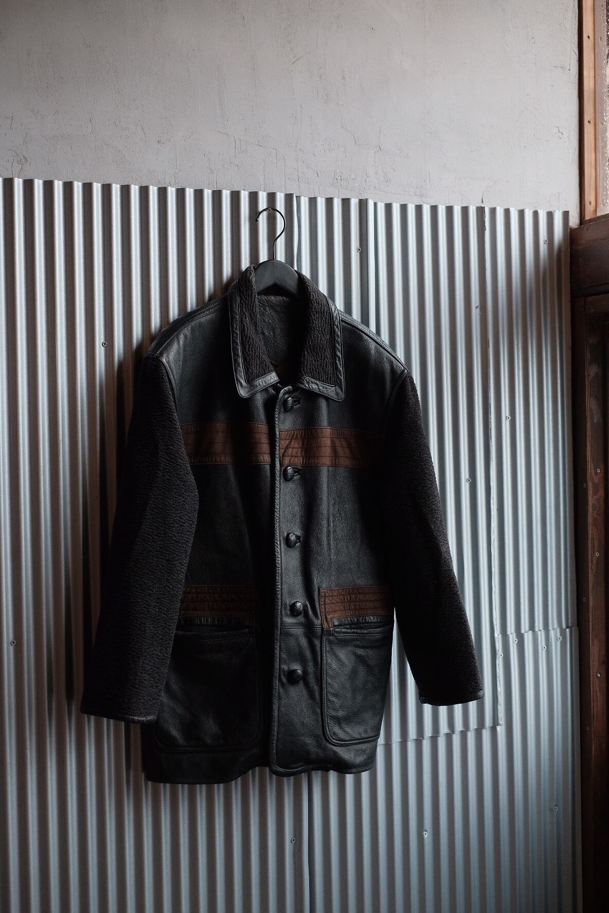 レザーウール切替しジャケット