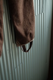 裾に開けて強いテーパードがかかったパンツです。