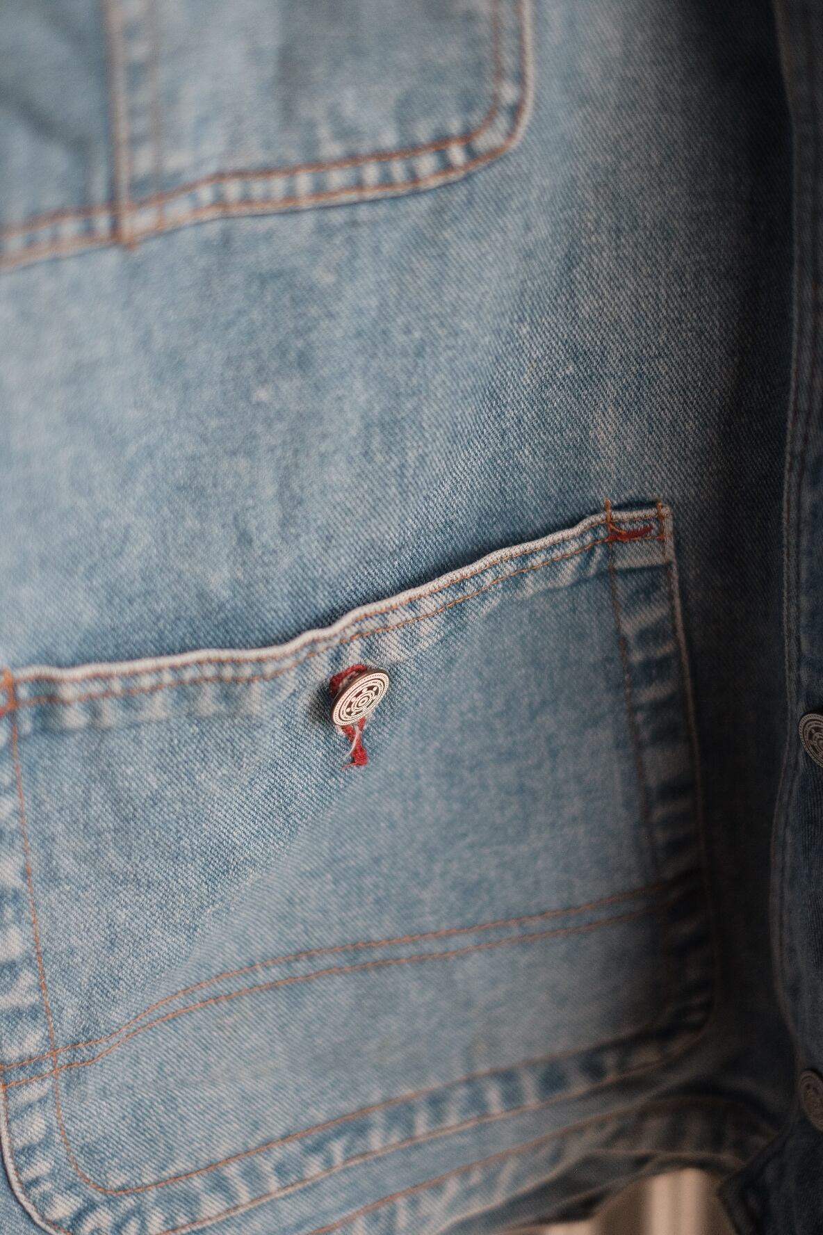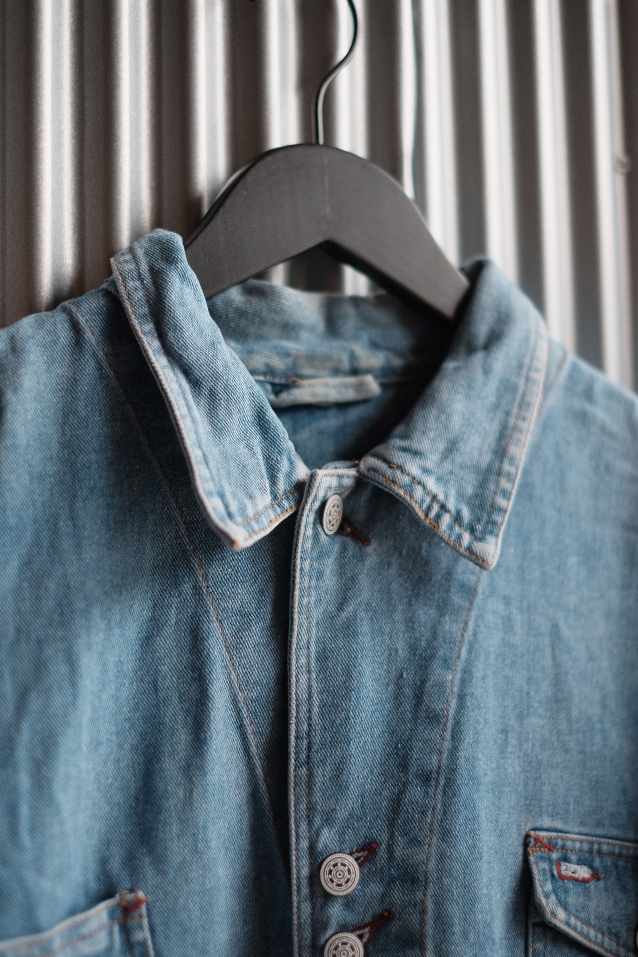 形が特徴的なデニムジャケットです。